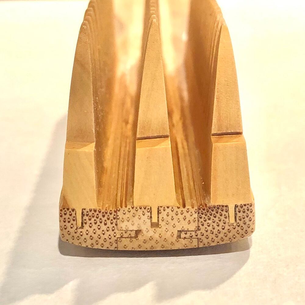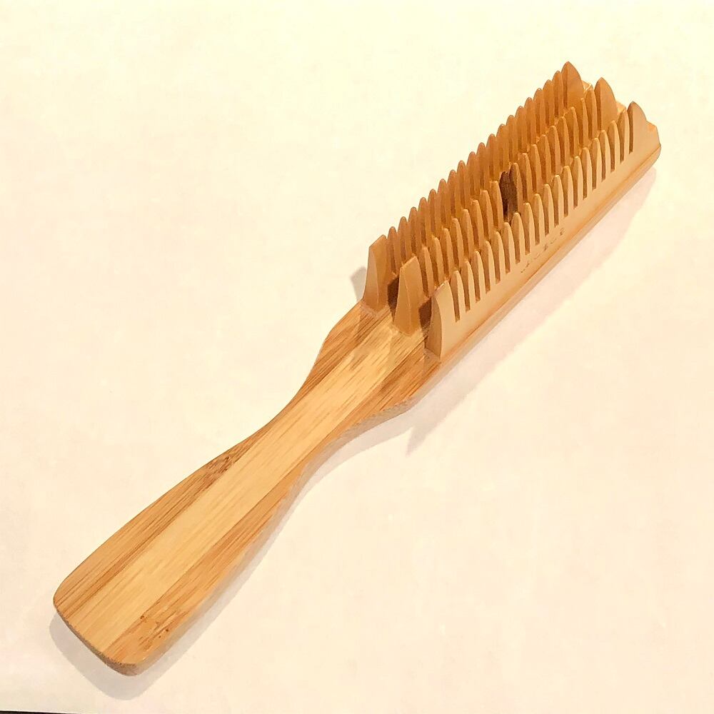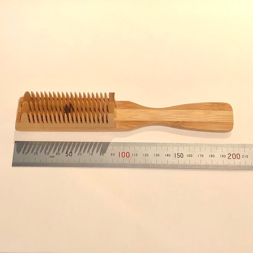 現代の髪型にも対応できるように3列並んだ櫛ブラシを作りました。